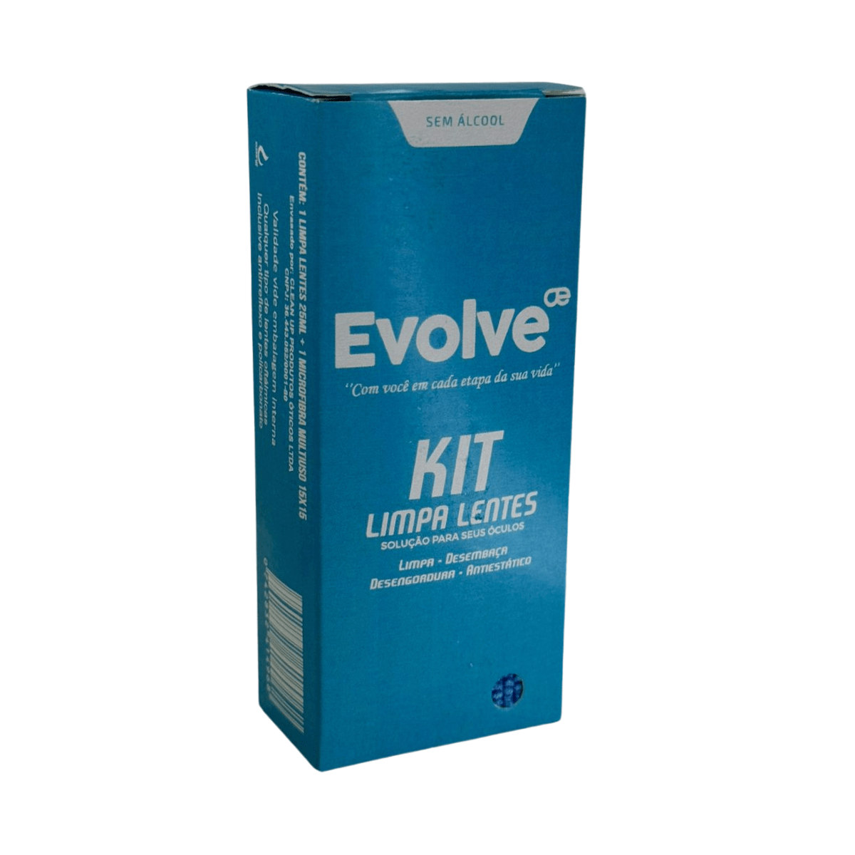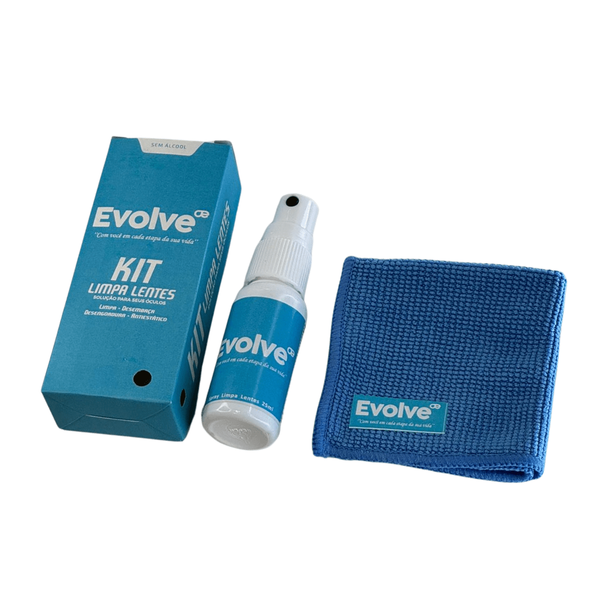 Mantenha seus óculos sempre limpos e com visão nítida usando o Kit de Limpeza Evolve.