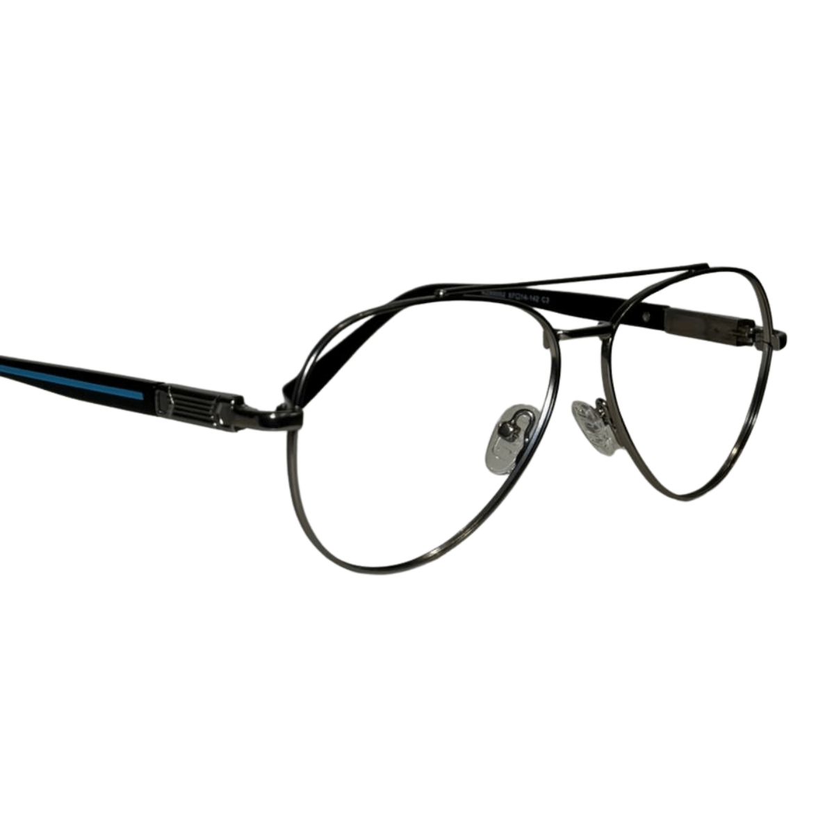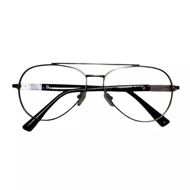 Óculos de grau masculino, modelo aviador em metal, com hastes também em metal, tem um design sofisticado e atemporal. Seu formato confere um visual moderno e elegante, perfeito para quem gosta de se destacar com estilo.