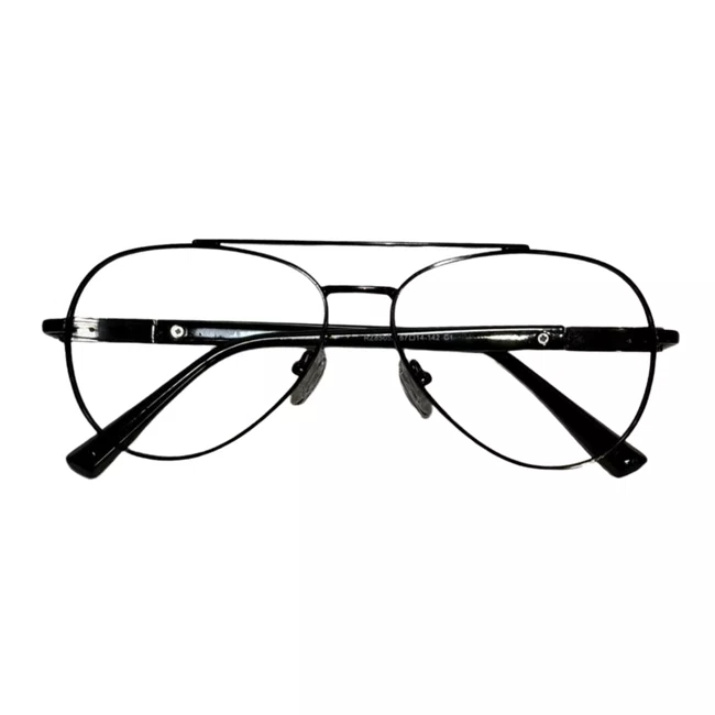 Óculos de grau masculino, modelo aviador em metal, com hastes também em metal, tem um design sofisticado e atemporal. Seu formato confere um visual moderno e elegante, perfeito para quem gosta de se destacar com estilo.
