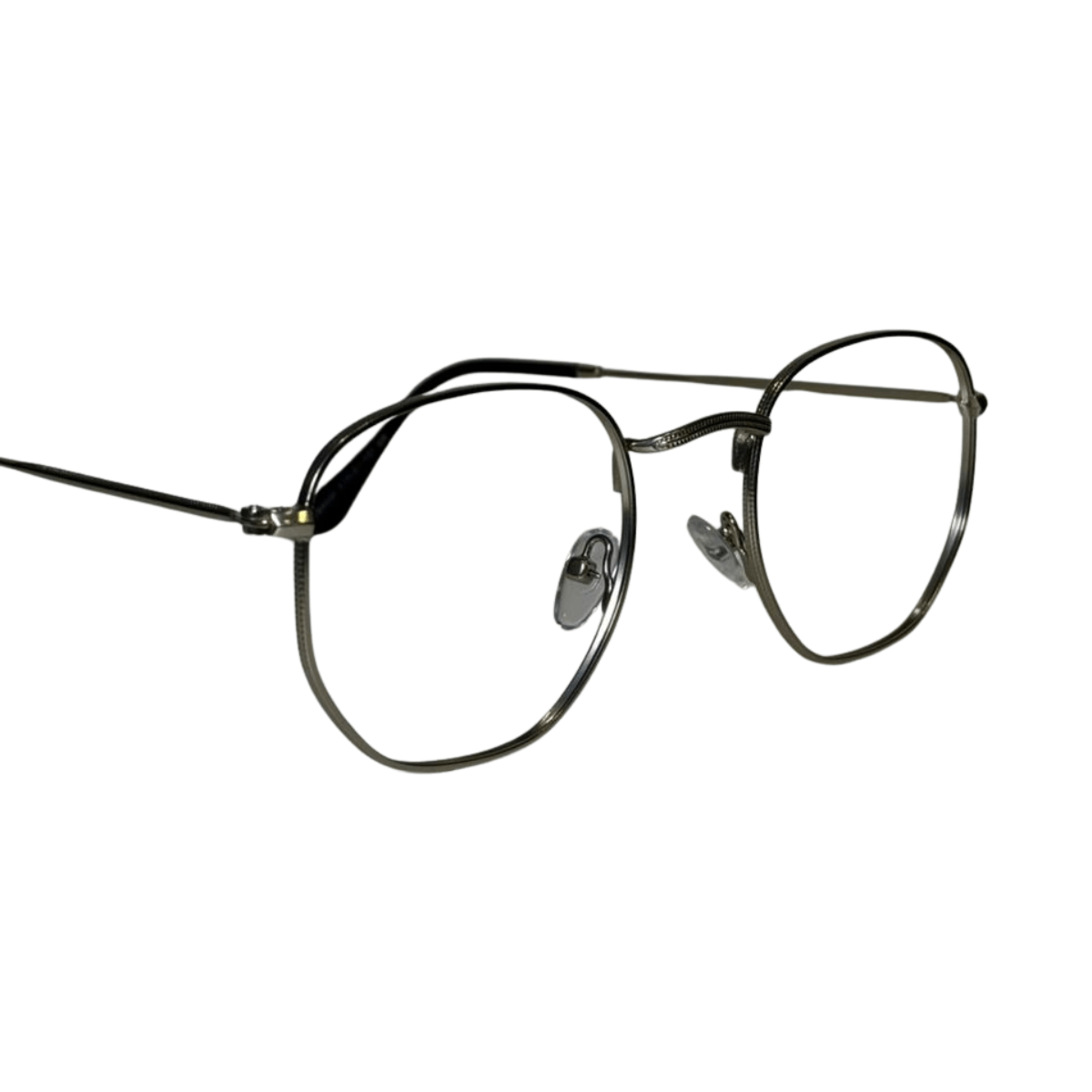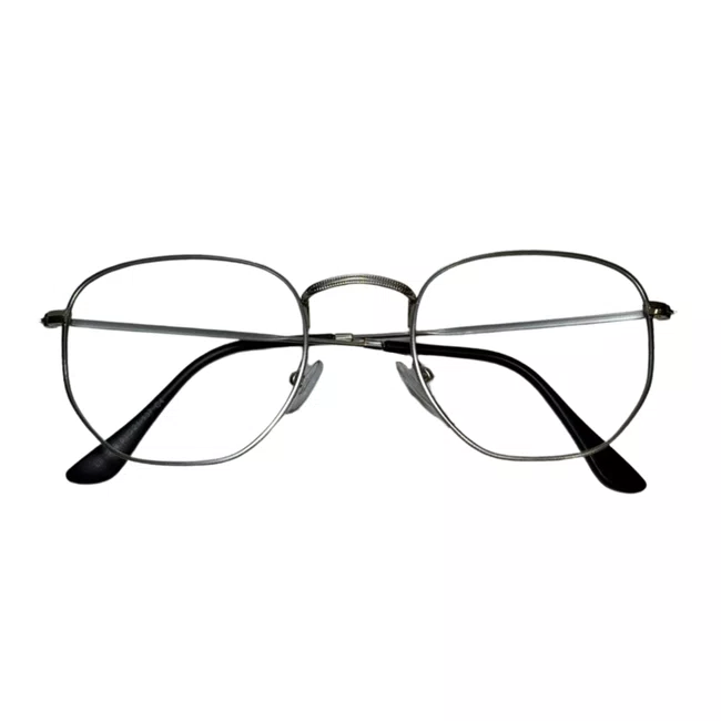 Óculos de grau feminino, modelo hexagonal em metal, com hastes também em metal, tem um design sofisticado e atemporal que é sucesso no momento. Seu formato confere um visual moderno e elegante, perfeito para quem gosta de se destacar com estilo. Indicamos esse modelo específico para rostos pequenos.