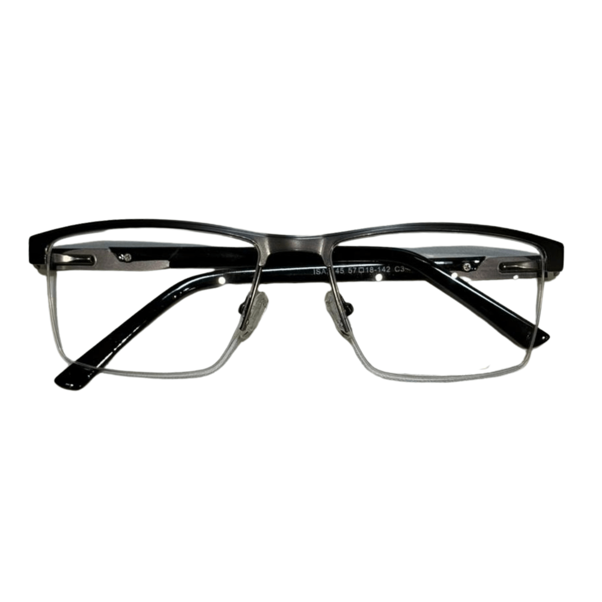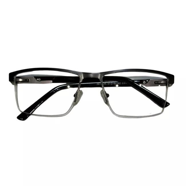 Óculos de grau masculino, modelo quadrado em metal, com hastes também em metal, tem um design sofisticado e atemporal. Seu formato confere um visual moderno e elegante, perfeito para quem gosta de se destacar com estilo.