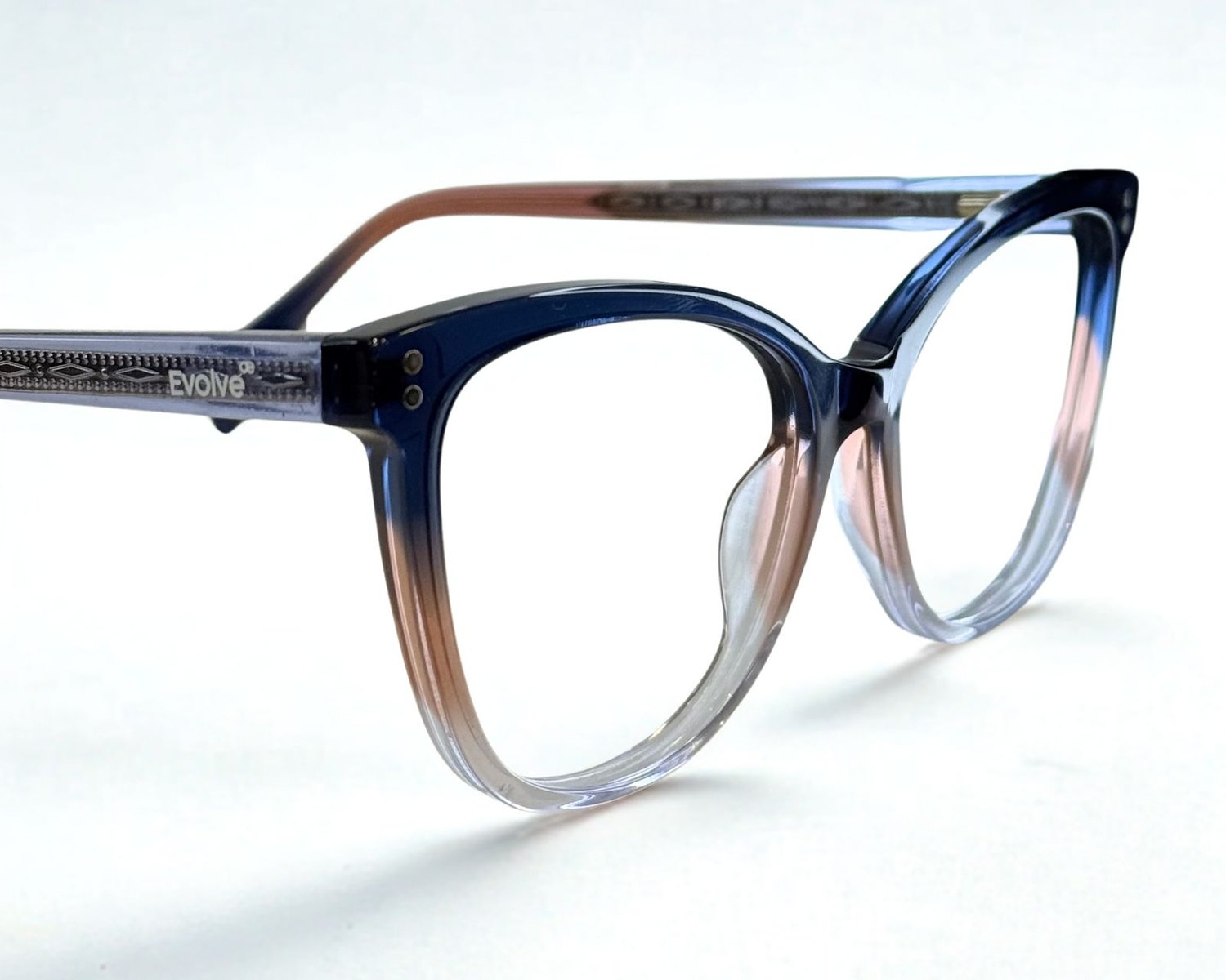 Óculos de grau feminino clip-on, modelo 2 em 1 em acetato com hastes em acetato em formato quadrado, com um leve acentuado nas sobrancelhas para harmonizar melhor a expressão facial, o óculos Evolve é a escolha perfeita para quem busca praticidade e elegância no dia a dia, pois sua versatilidade permite a troca rápida entre as lentes de grau e o clip-on solar.