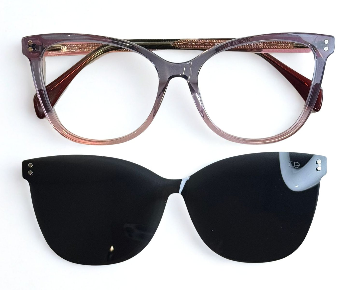 Óculos de grau feminino clip-on, modelo 2 em 1 em acetato com hastes em acetato, em formato quadrado com um leve acentuado nas sobrancelhas para harmonizar melhor a expressão facial, o óculos Evolve é a escolha perfeita para quem busca praticidade e elegância no dia a dia, pois sua versatilidade permite a troca rápida entre as lentes de grau e o clip-on solar.