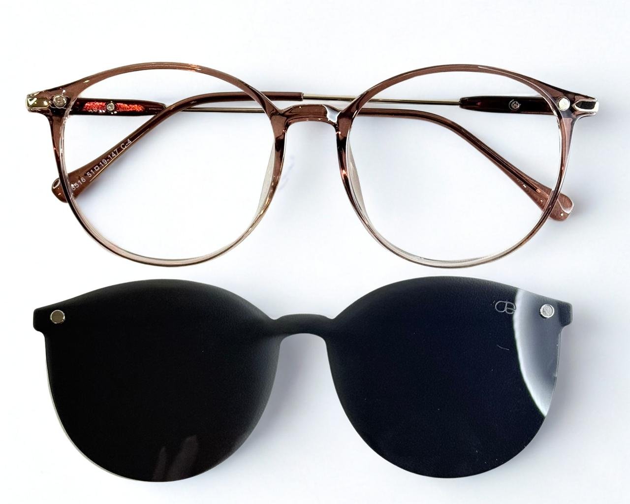 Óculos de Grau Feminino Clip-on Modelo 2 em 1 em Marrom Translúcido