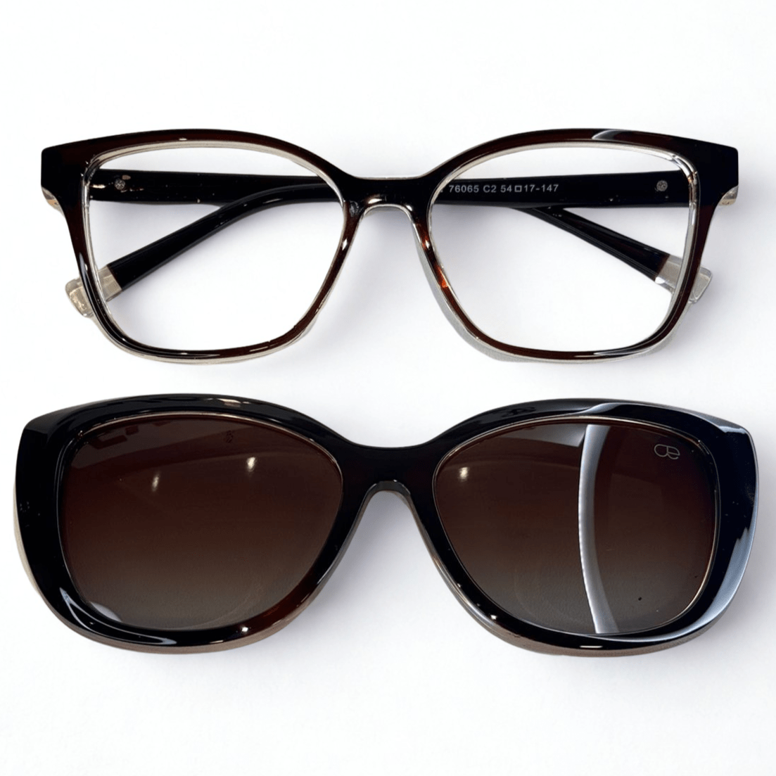 Óculos de grau feminino clip-on, modelo 2 em 1 em Marrom Translúcido