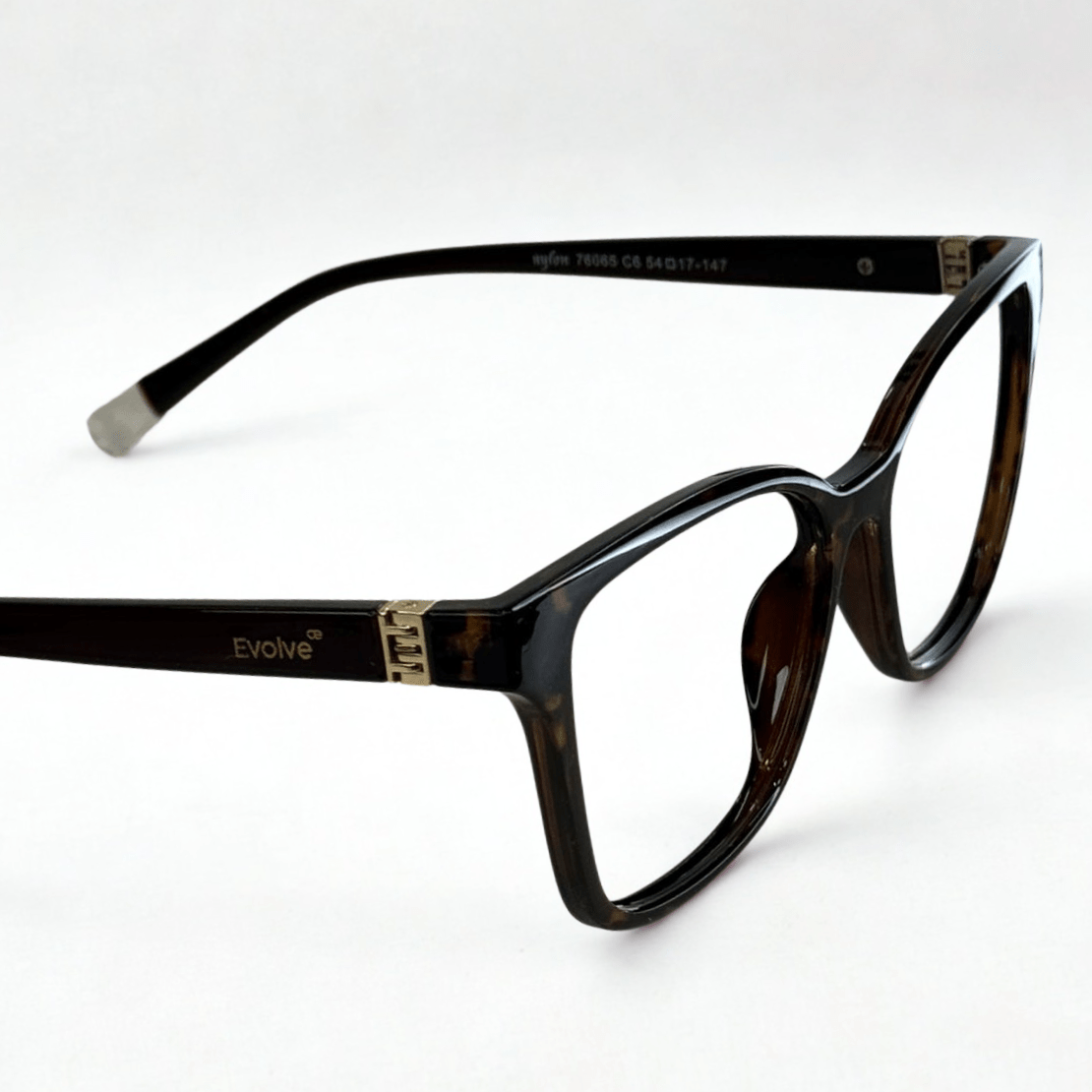 Óculos de grau feminino clip-on, modelo 2 em 1 em acetato com hastes em acetato, em formato quadrado com um acentuado nas sobrancelhas para harmonizar melhor a expressão facial, o óculos Evolve é a escolha perfeita para quem busca praticidade e elegância no dia a dia, pois sua versatilidade permite a troca rápida entre as lentes de grau e o clip-on solar.