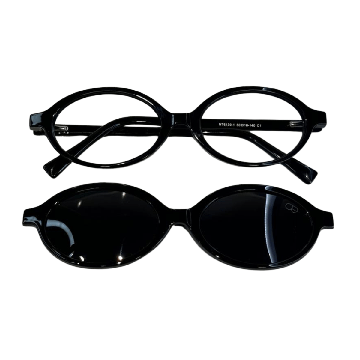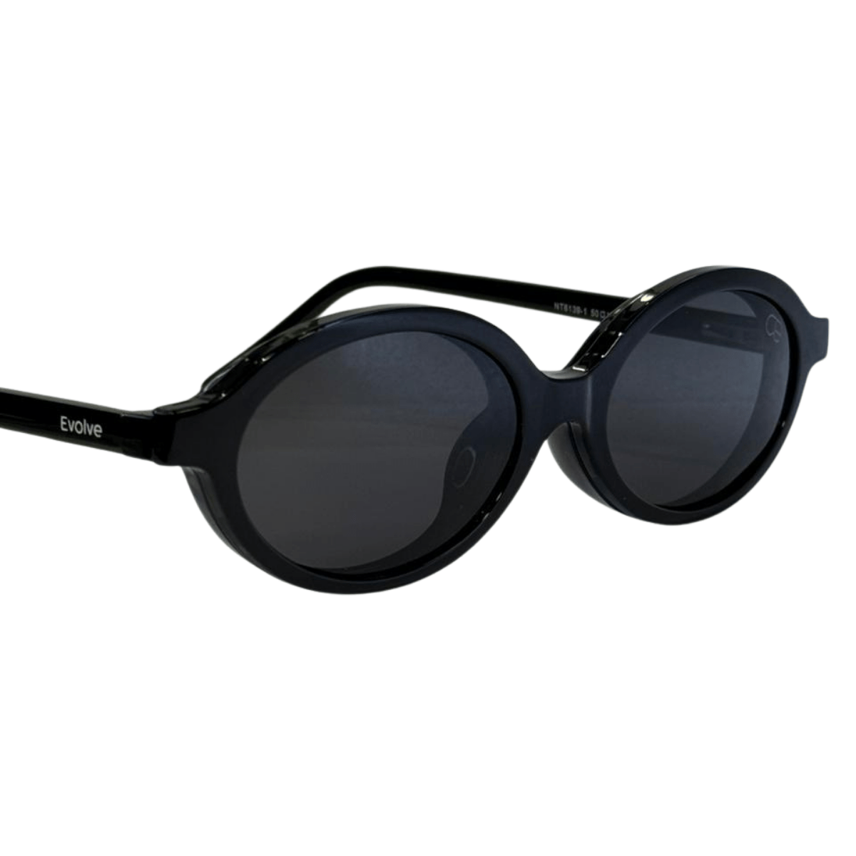 Óculos de grau feminino clip-on, modelo 2 em 1 em acetato com hastes em acetato, em formato oval, o óculos Evolve é a escolha perfeita para quem busca tendência e praticidade, pois sua versatilidade permite a troca rápida entre as lentes de grau e o clip-on solar.