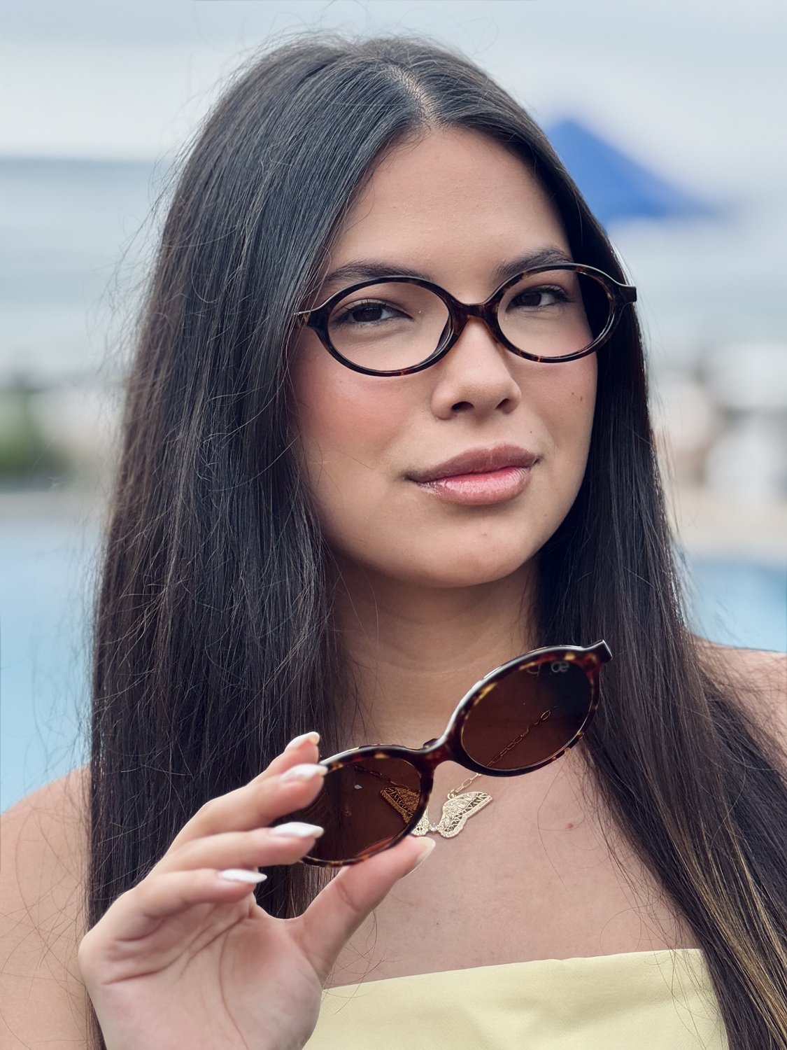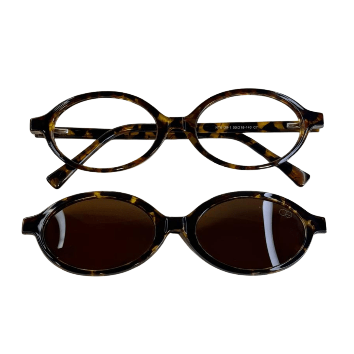 Óculos de grau feminino clip-on, modelo 2 em 1 em acetato com hastes em acetato, em formato oval, o óculos Evolve é a escolha perfeita para quem busca tendência e praticidade, pois sua versatilidade permite a troca rápida entre as lentes de grau e o clip-on solar.
