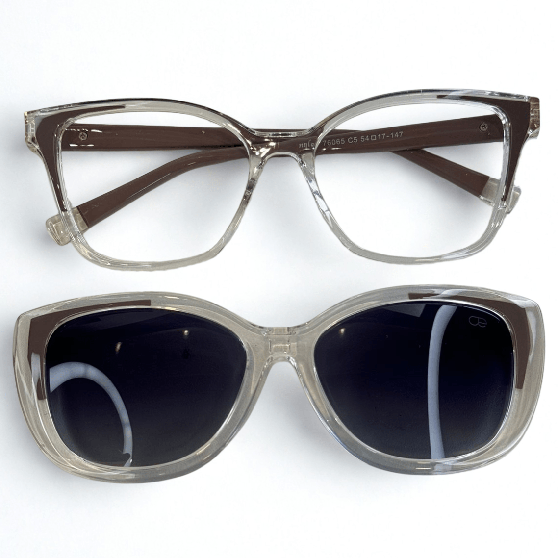 Óculos de grau feminino clip-on, modelo 2 em 1 em Transparente