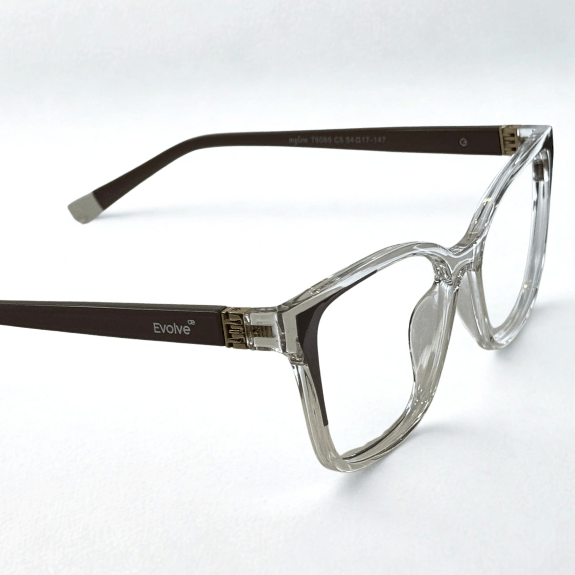 Óculos de grau feminino clip-on, modelo 2 em 1 em acetato com hastes em acetato, em formato quadrado com um acentuado nas sobrancelhas para harmonizar melhor a expressão facial, o óculos Evolve é a escolha perfeita para quem busca praticidade e elegância no dia a dia, pois sua versatilidade permite a troca rápida entre as lentes de grau e o clip-on solar.
