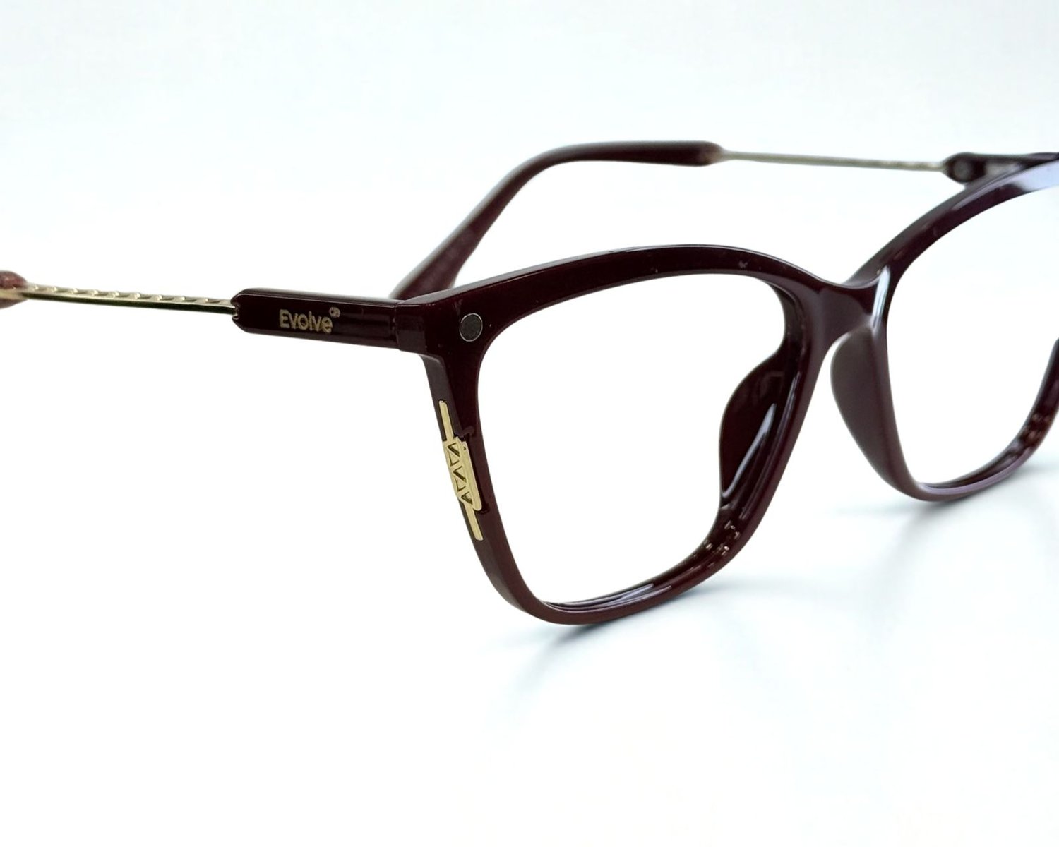 Óculos de grau feminino clip-on, modelo 2 em 1 em acetato, com hastes em acetato com detalhe em metal, em formato quadrado com um leve acentuado nas sobrancelhas para harmonizar melhor a expressão facial, o óculos Evolve é a escolha perfeita para quem busca praticidade e elegância no dia a dia, pois sua versatilidade permite a troca rápida entre as lentes de grau e o clip-on solar.