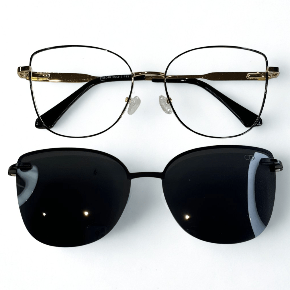 Óculos de grau feminino clip-on, modelo 2 em 1 metal em Preto