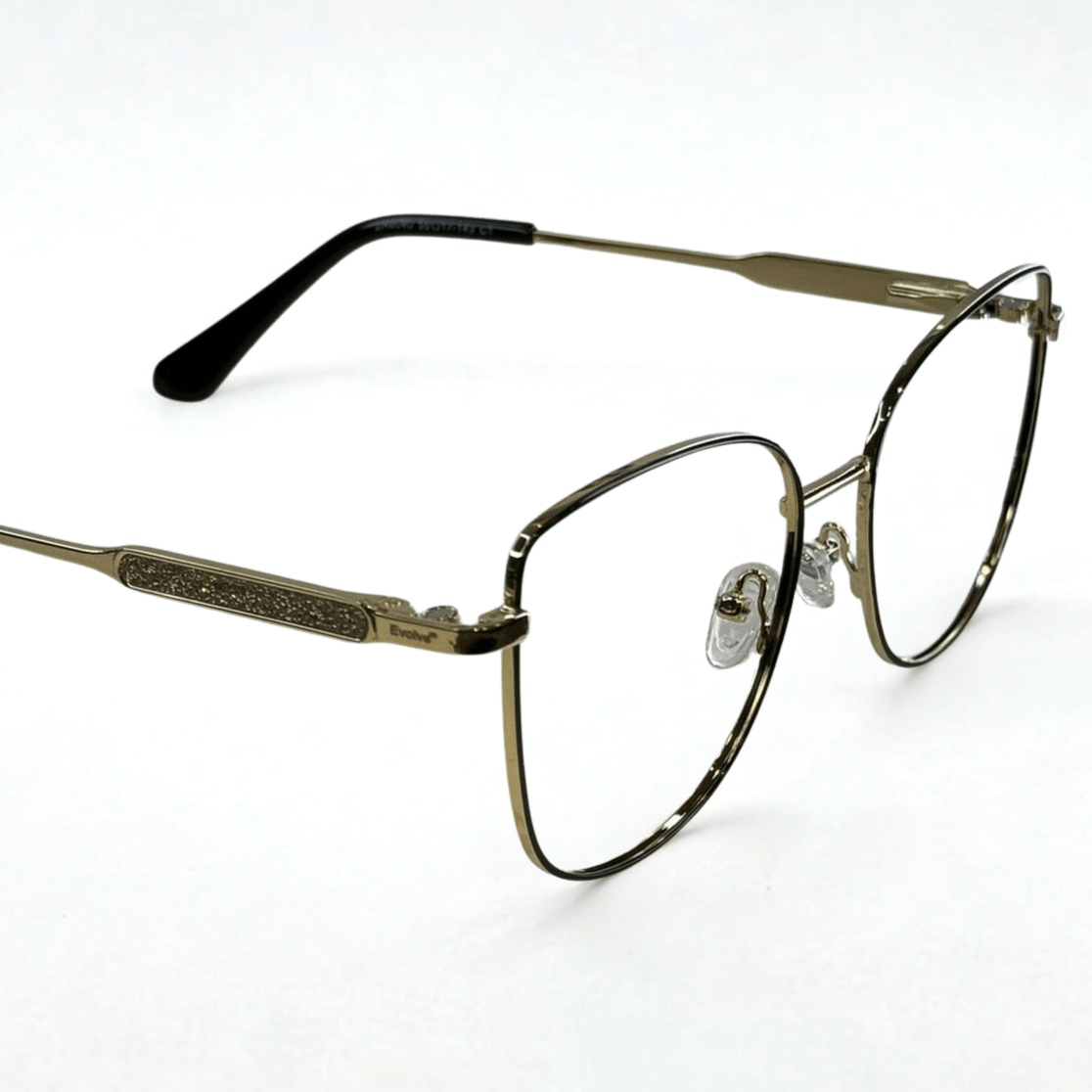 Óculos de grau feminino clip-on, modelo 2 em 1 em metal com hastes em metal, em formato quadrado com um acentuado nas sobrancelhas para harmonizar melhor a expressão facial, o óculos Evolve é a escolha perfeita para quem busca praticidade e elegância no dia a dia, pois sua versatilidade permite a troca rápida entre as lentes de grau e o clip-on solar.
