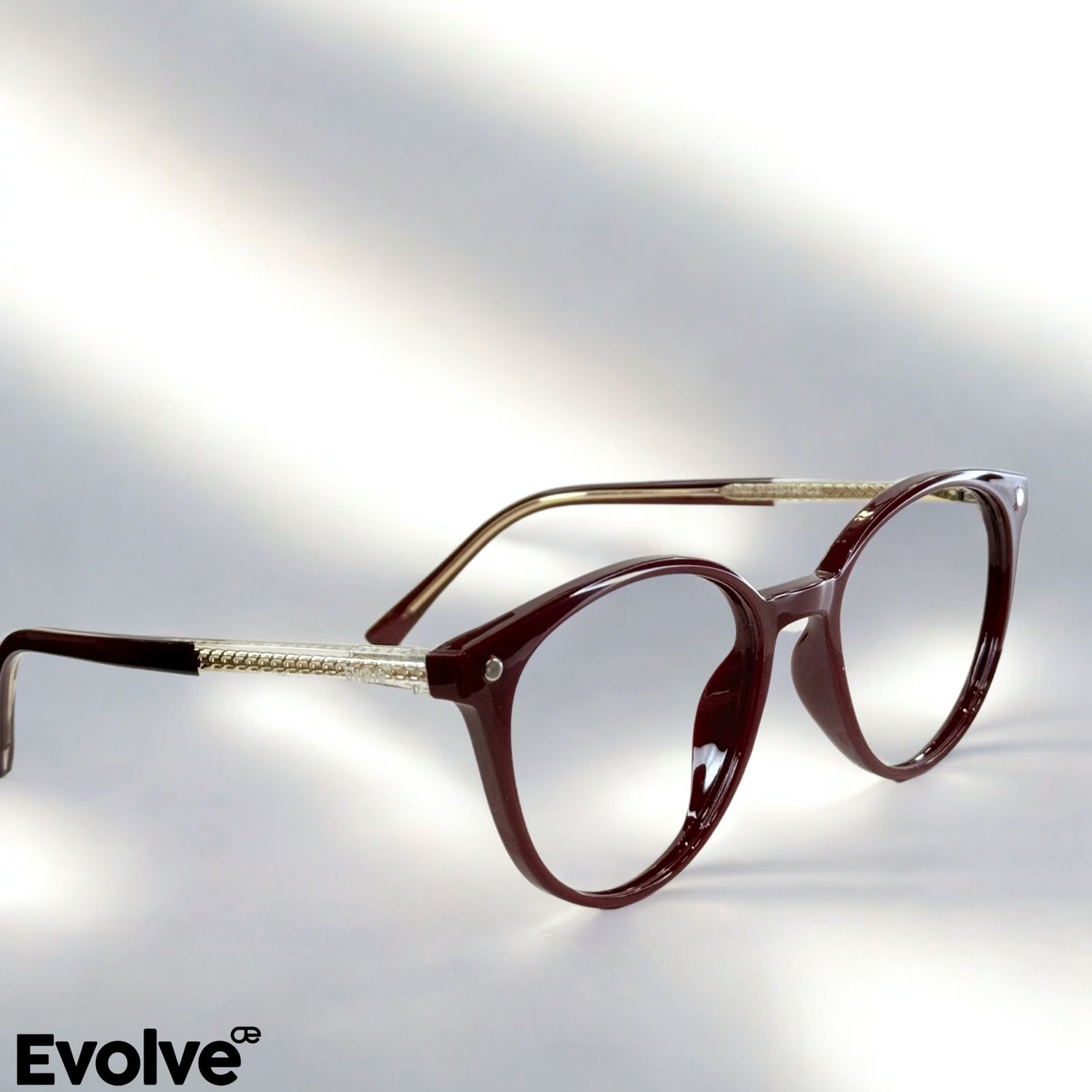 Óculos de grau feminino clip-on, modelo 2 em 1 em acetato com hastes em acetato em formato redondo com um leve acentuado nas sobrancelhas para harmonizar melhor a expressão facial, o óculos Evolve é a escolha perfeita para quem busca praticidade e elegância no dia a dia, pois sua versatilidade permite a troca rápida entre as lentes de grau e o clip-on solar.