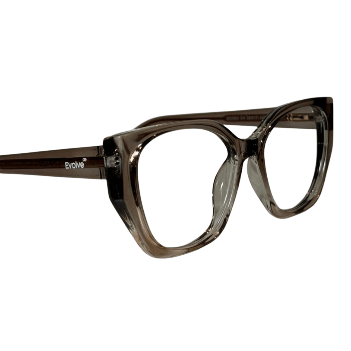 Óculos de grau feminino em acetato, com hastes em acetato, em formato gatinho, o óculos Evolve é a escolha perfeita para quem busca praticidade e elegância no dia a dia.