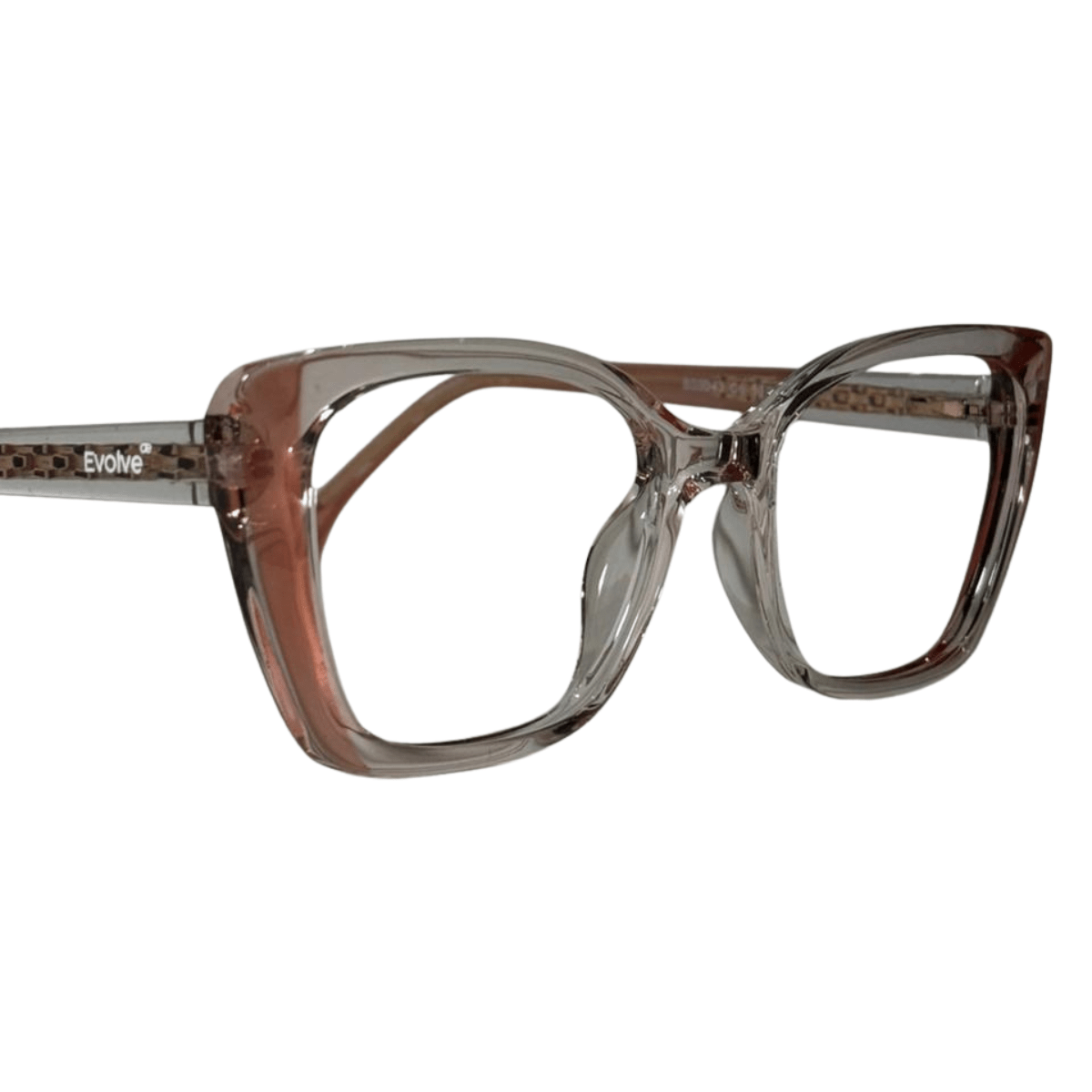 Óculos de grau feminino em acetato, com hastes em acetato, em formato gatinho, o óculos Evolve é a escolha perfeita para quem busca praticidade e elegância no dia a dia.