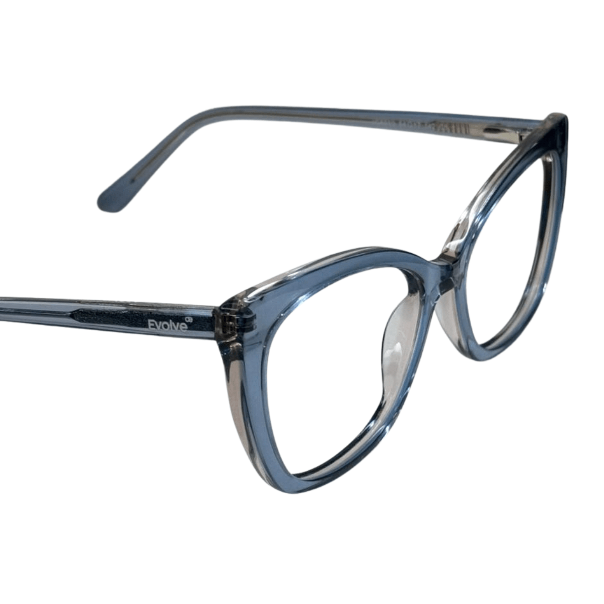 Óculos de grau feminino em acetato, com hastes em acetato, em formato gatinho com um leve acentuado nas sobrancelhas para harmonizar melhor a expressão facial, o óculos Evolve é a escolha perfeita para quem busca praticidade e elegância no dia a dia.
