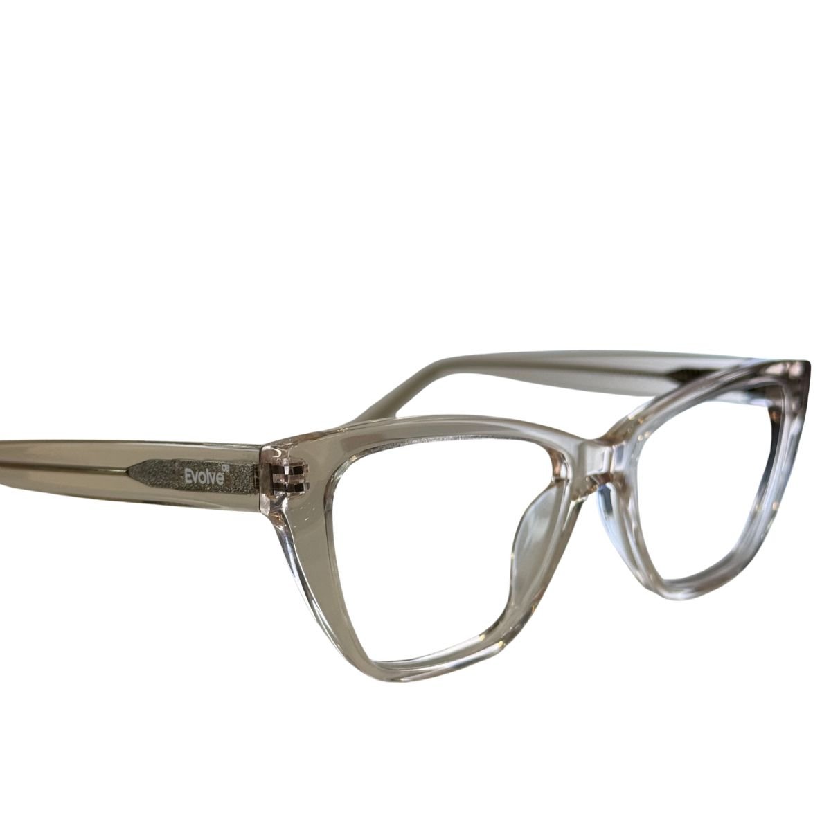 Óculos de grau feminino, em acetato, com hastes em acetato, em formato quadrado com um leve acentuado nas sobrancelhas para harmonizar melhor a expressão facial, o óculos Evolve é a escolha perfeita para quem busca praticidade e elegância no dia a dia.