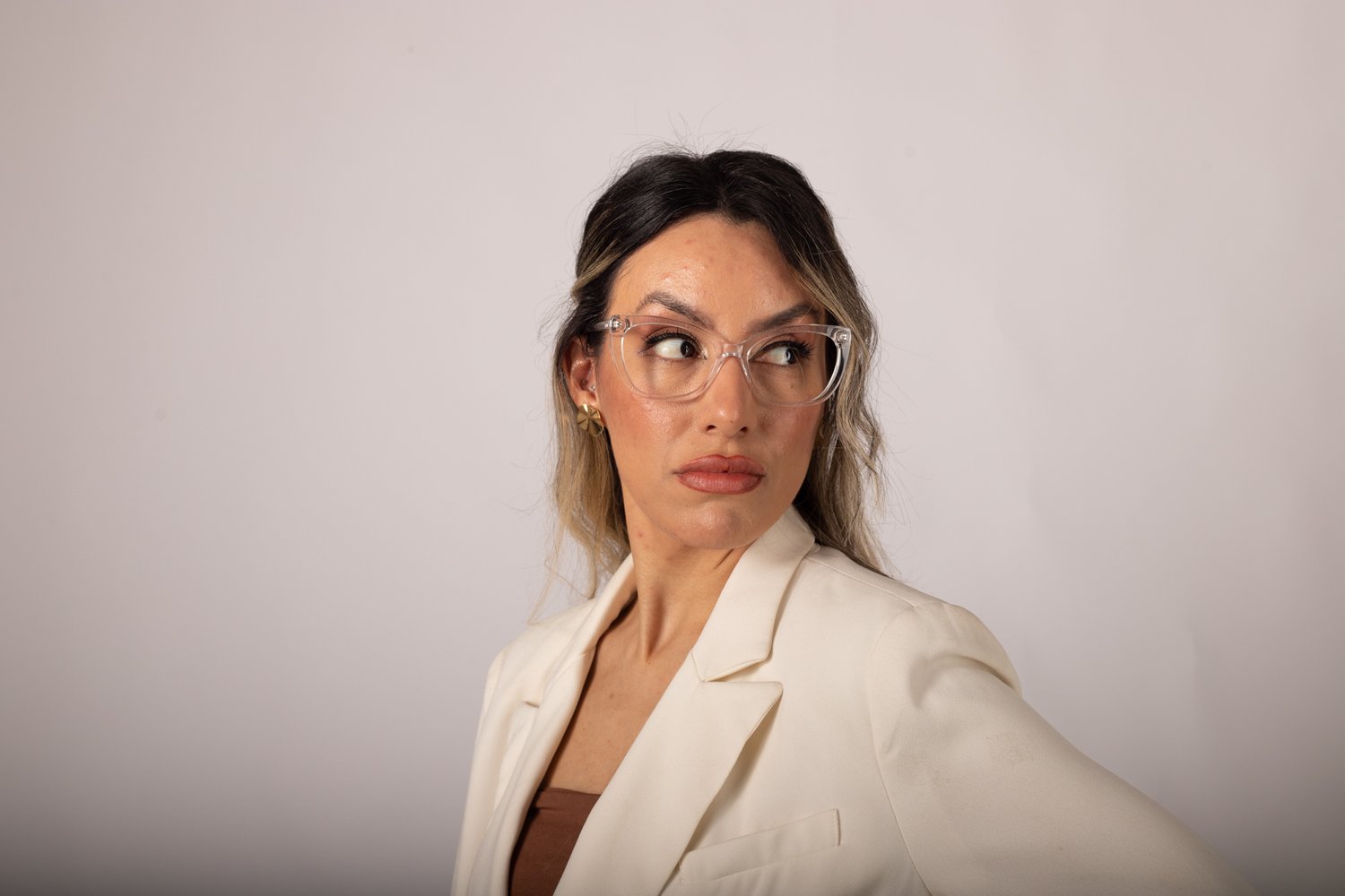 Óculos de grau feminino em acetato, com hastes em acetato, em formato gatinho com um leve acentuado nas sobrancelhas para harmonizar melhor a expressão facial, o óculos Evolve é a escolha perfeita para quem busca praticidade e elegância no dia a dia.