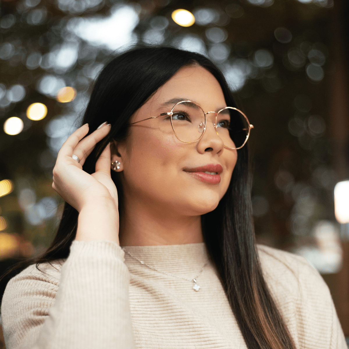Óculos de grau feminino em metal, com hastes em metal, em formato redondo, o óculos Evolve é a escolha perfeita para quem busca praticidade e elegância no dia a dia.