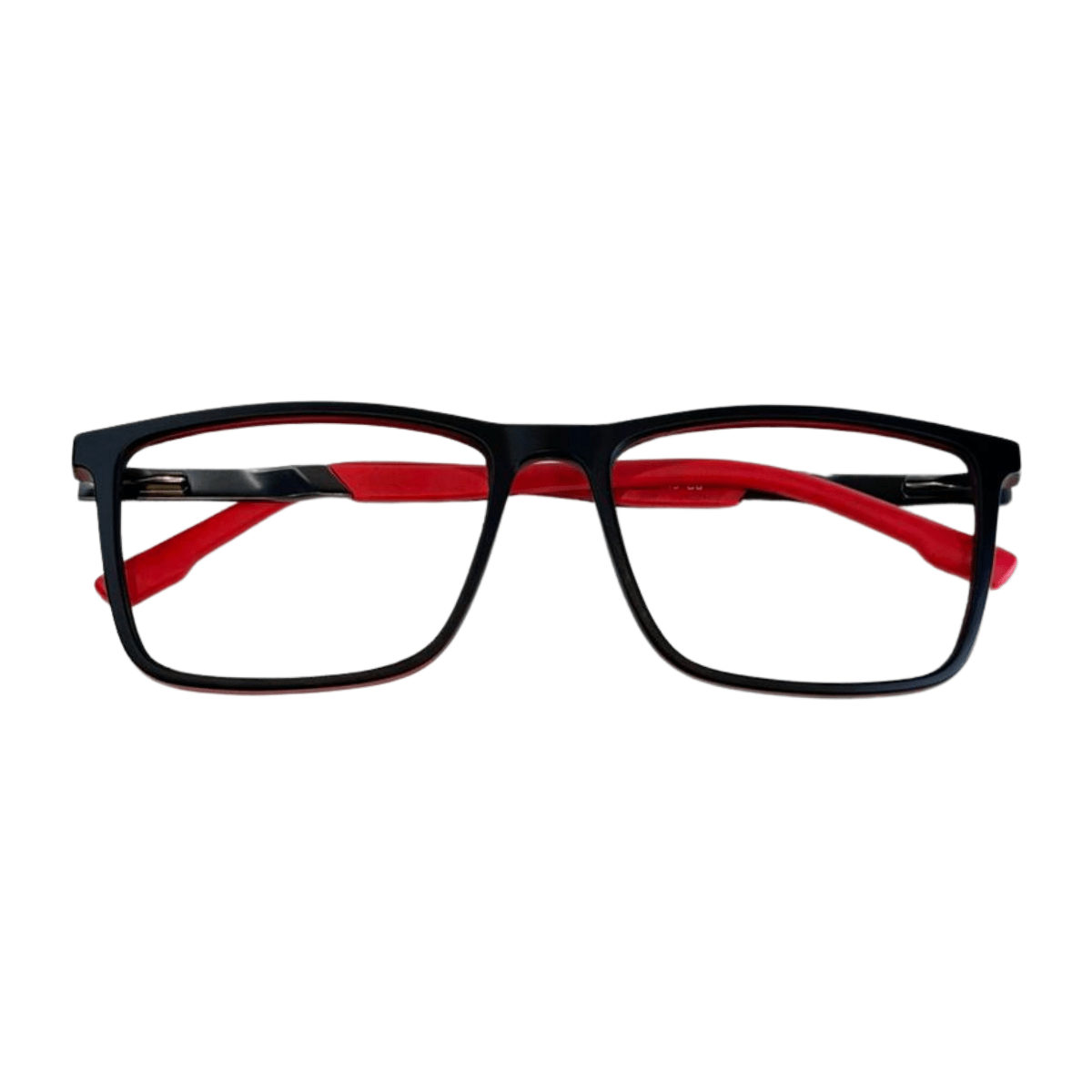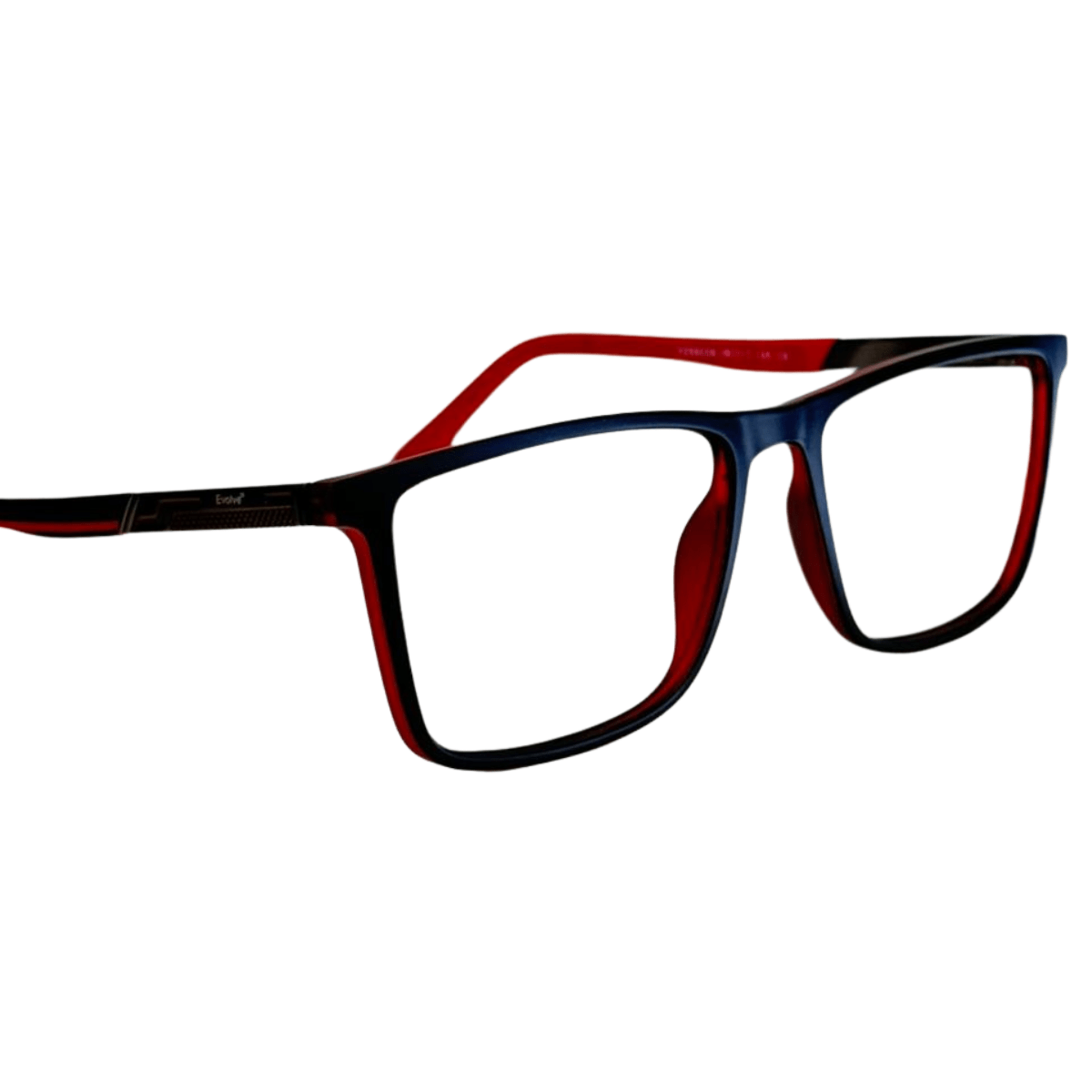 Óculos de grau masculino em acetato, com hastes em metal com detalhes em vermelho, em formato quadrado, o óculos Evolve é a escolha perfeita para quem busca praticidade e elegância no dia a dia.