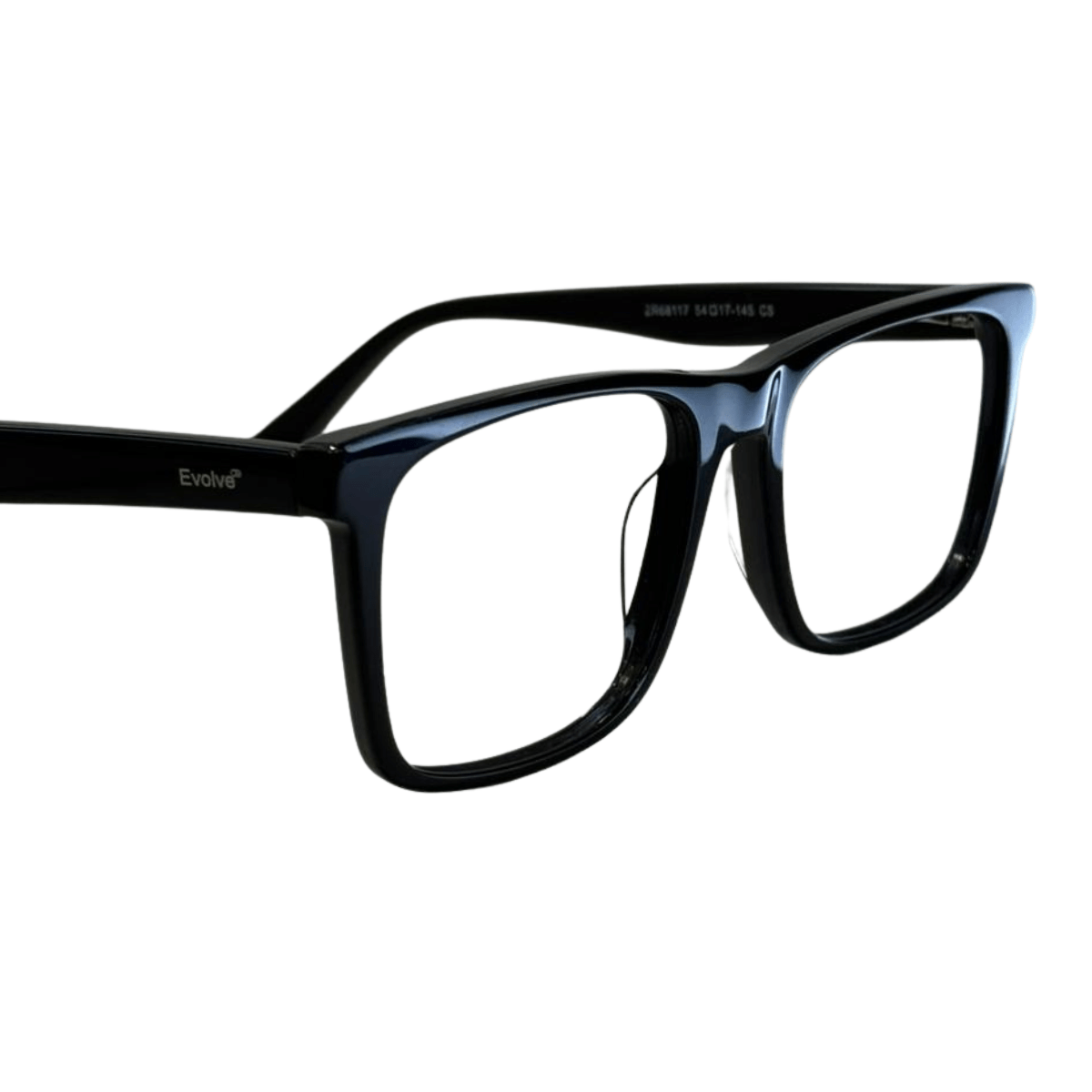 Óculos de grau masculino em acetato, com hastes em acetato, em formato quadrado, o óculos Evolve é a escolha perfeita para quem busca praticidade e elegância no dia a dia.