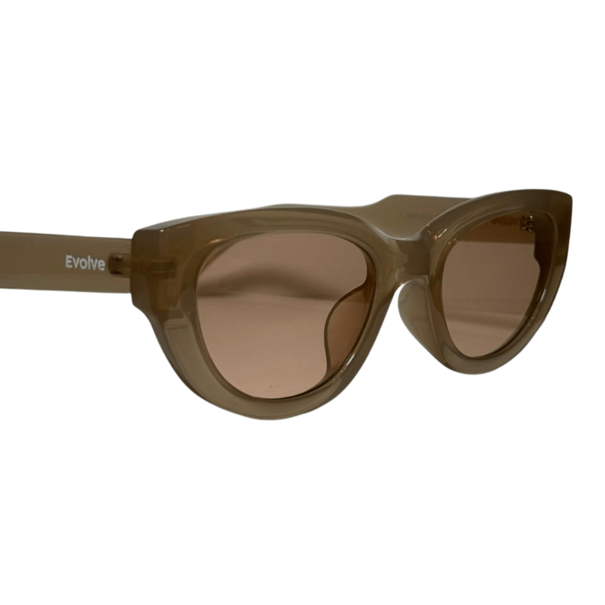 Óculos de sol feminino Evolve, modelo Gatinho em Bege Translúcido