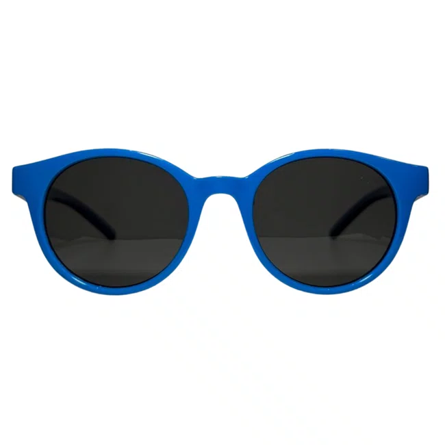 Óculos de sol flexível, modelo redondo em acetato, com hastes em acetato em azul, o óculos Evolve é a escolha perfeita para deixar as brincadeiras ao ar livre ainda mais seguras e cheias de estilo com o Óculos de Sol Infantil.