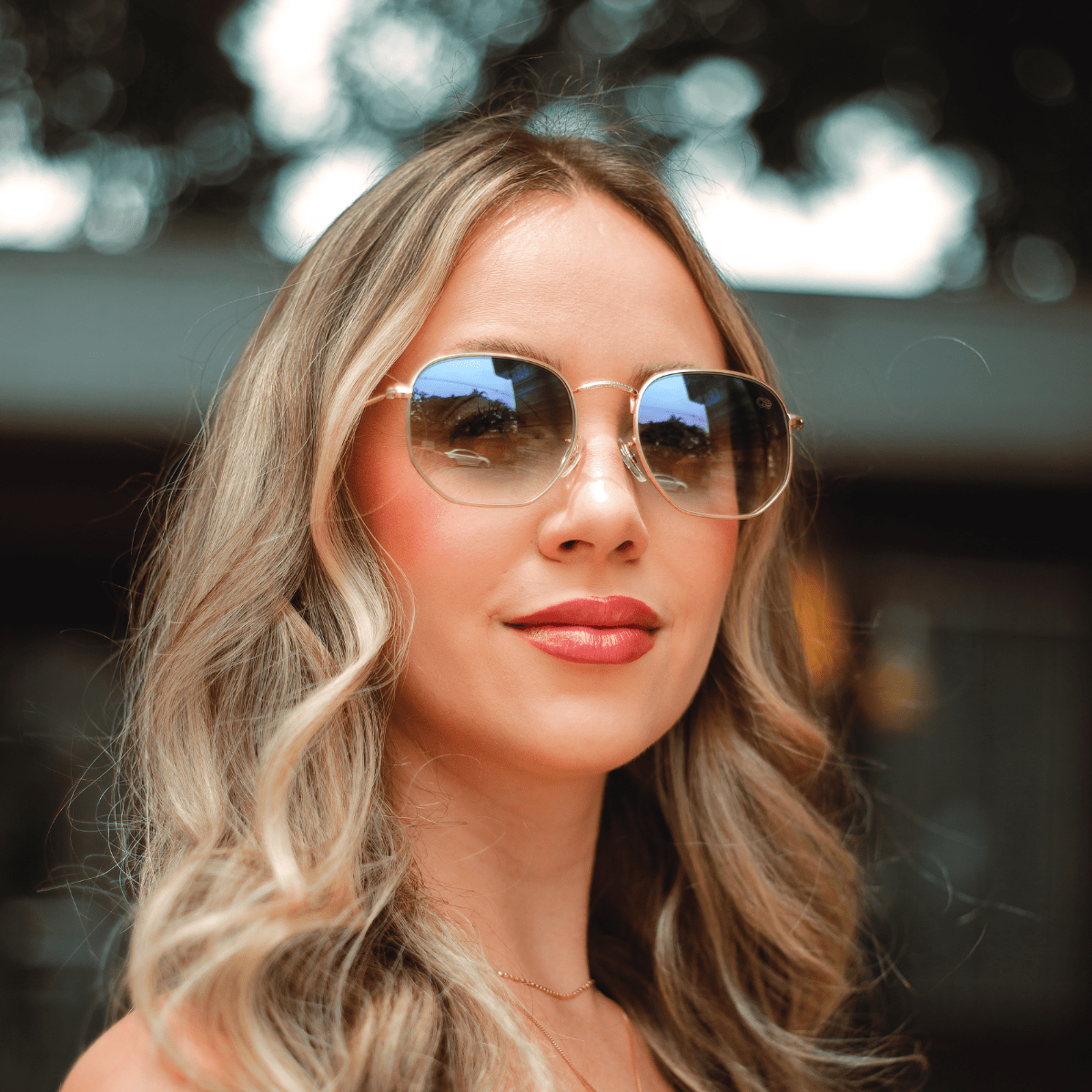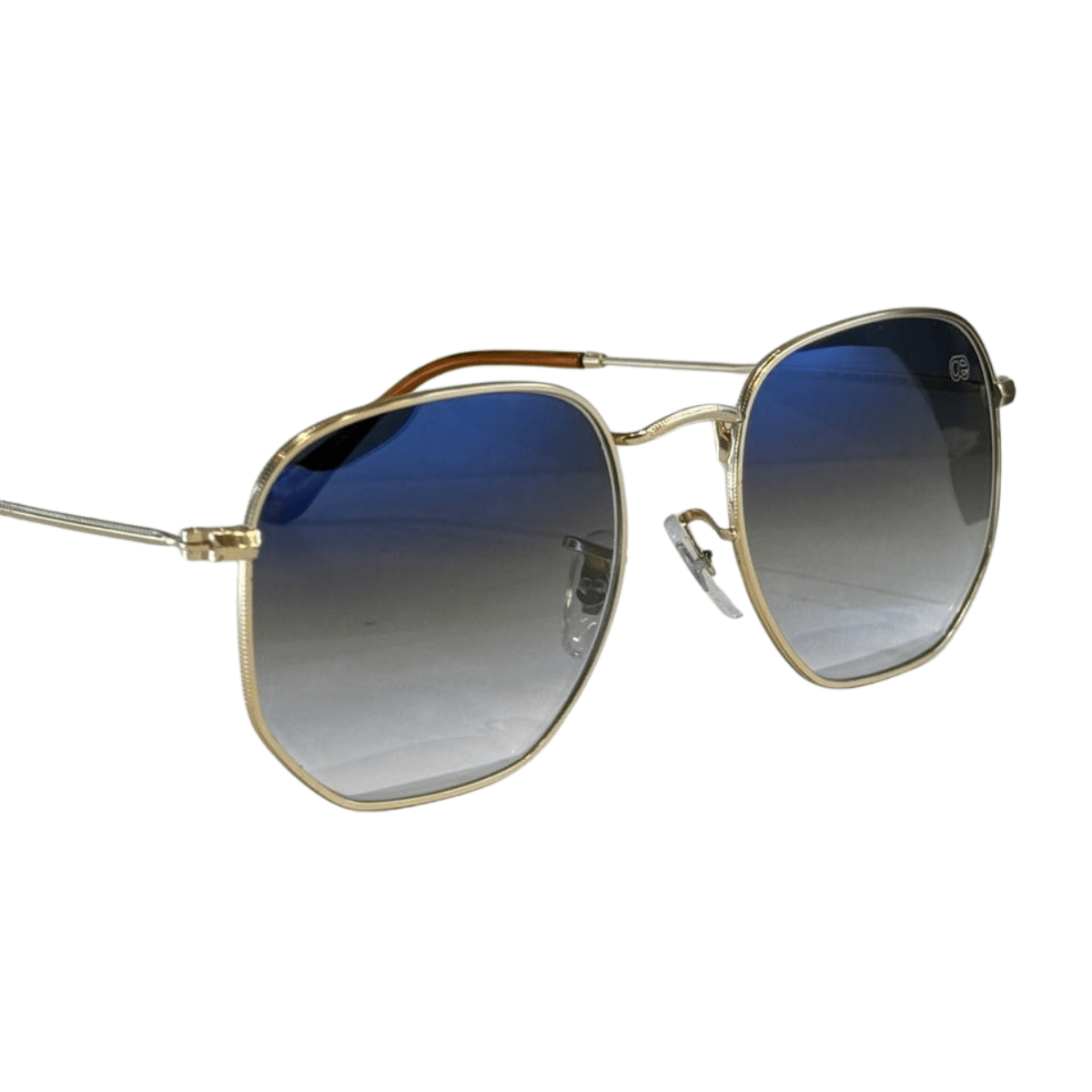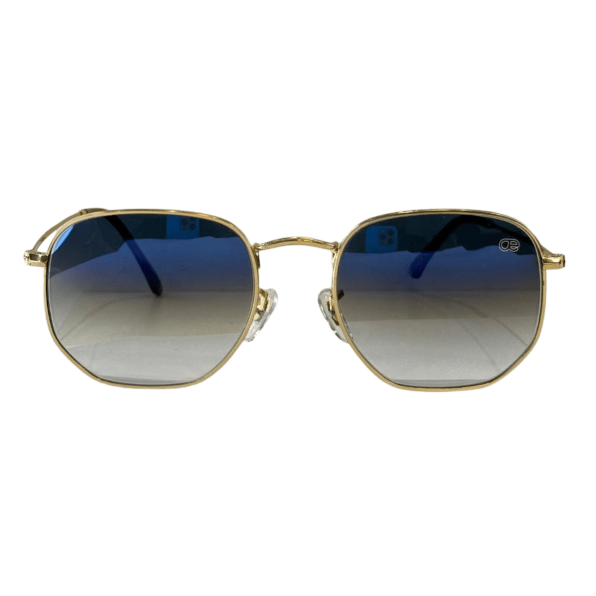 Óculos de sol, modelo hexagonal em Dourado lente azul